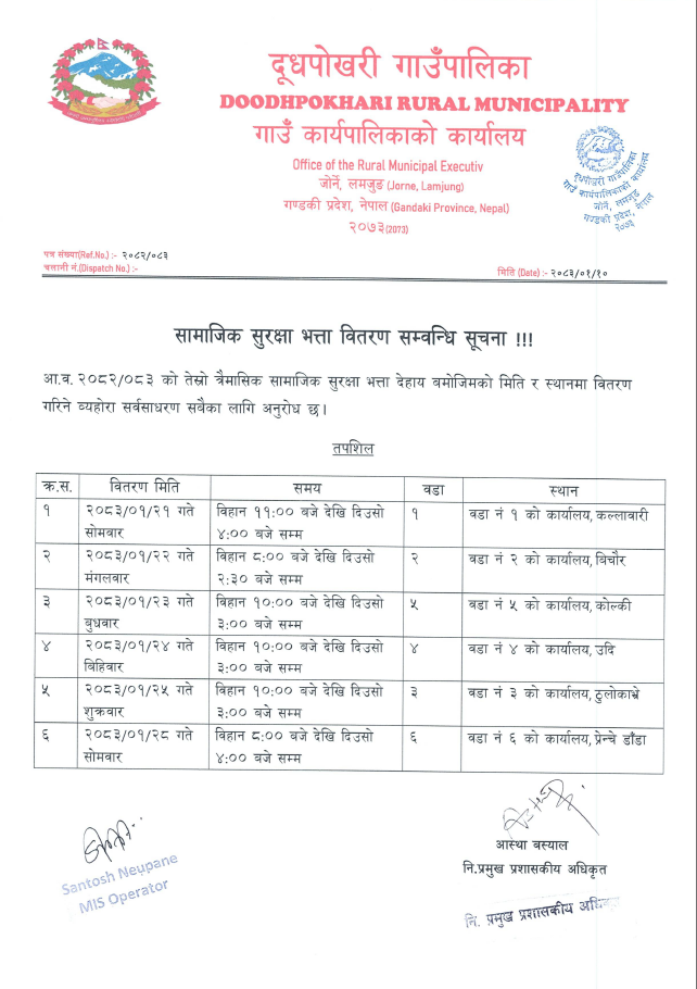 आ.व २०८१/०८२ को दोश्रो त्रैमासिक सामाजिक सुरक्षा भत्ता वितरण सम्बन्धि सूचना